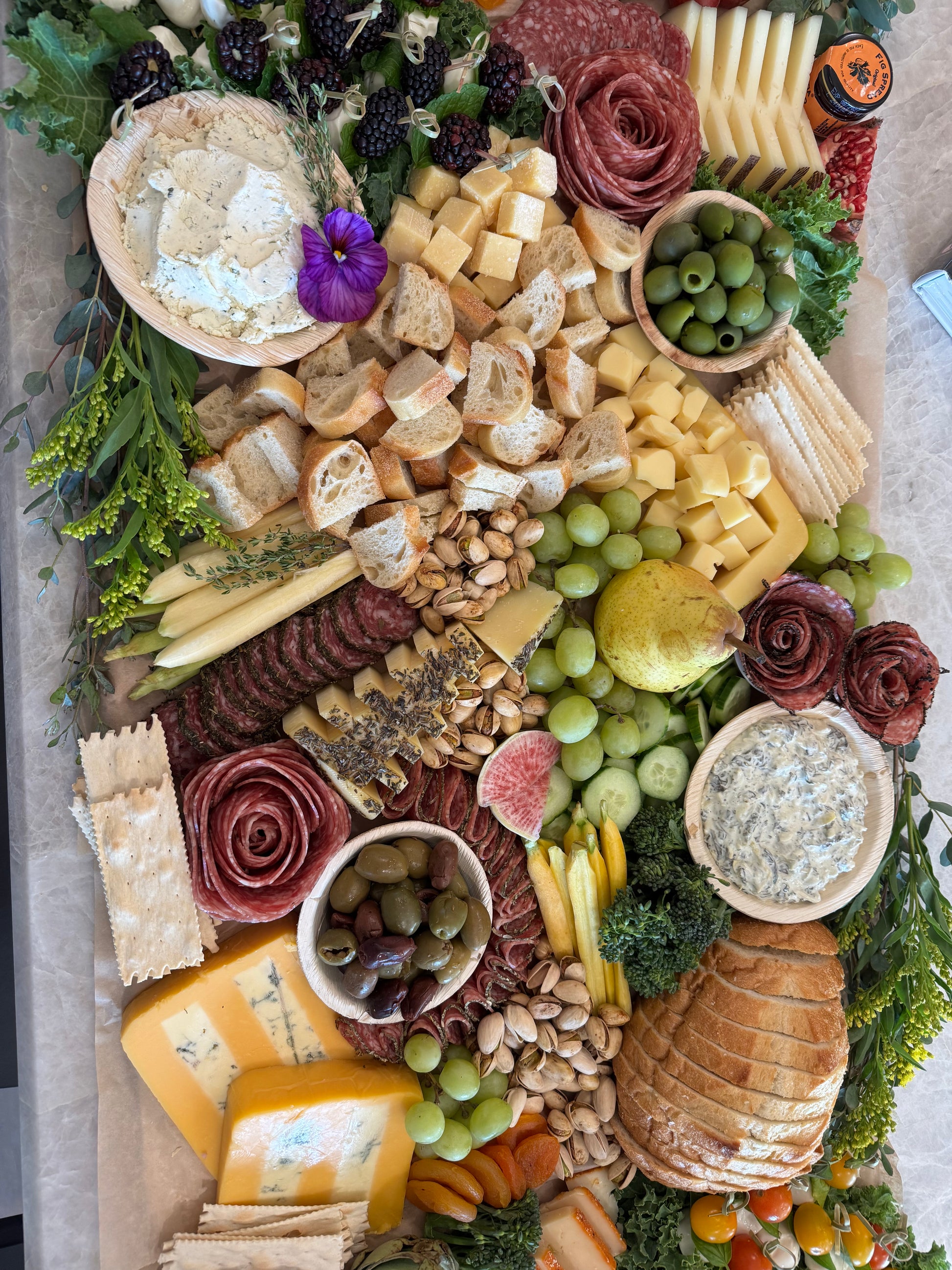Our Grazing Tables To Go are made up of pre-made sections, each designed to fit together seamlessly to create a full grazing table display when set up. Every section includes a delicious variety of: